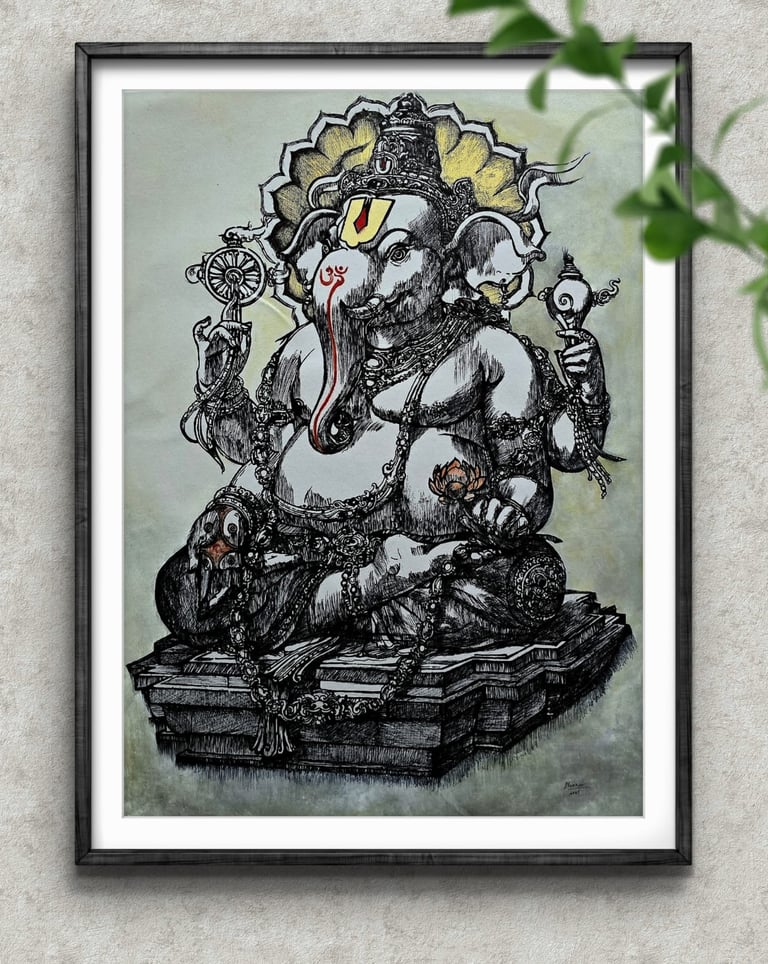 Inspired by India’s traditions where every brushstroke is devotion, every canvas a prayer, every colour a vibration we carry this essence forward.